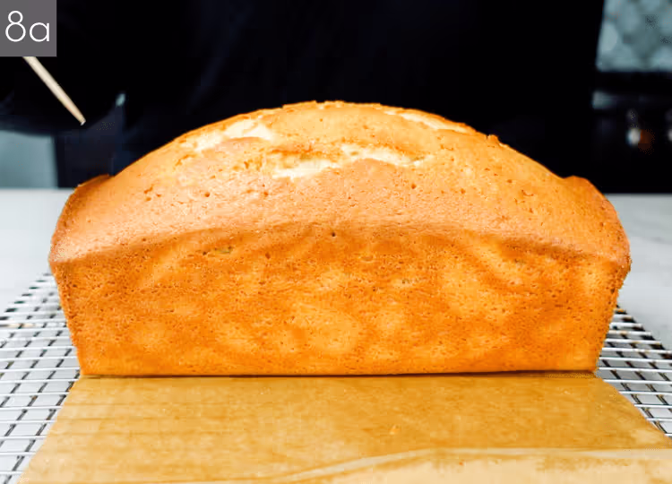 Use the sling to remove the loaf from the pan and use a toothpick to poke some holes through the top and sides (8a).